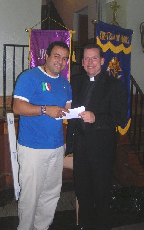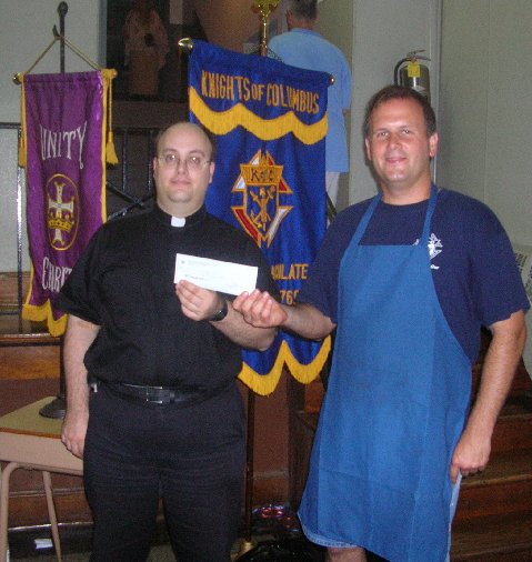 PGK John Niznik gave Parochial Vicar Father James Tucker a check for $1557. This is one half of the proceeds from the spring raffle.